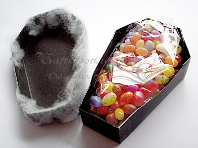I had something in particular in mind.. I really wanted a box in a shape of a coffin so that I could decorate my way.. so when I couldn't find anything like it to buy, I decided to go ahead and make my own template... And this is what it looks like when I was done...